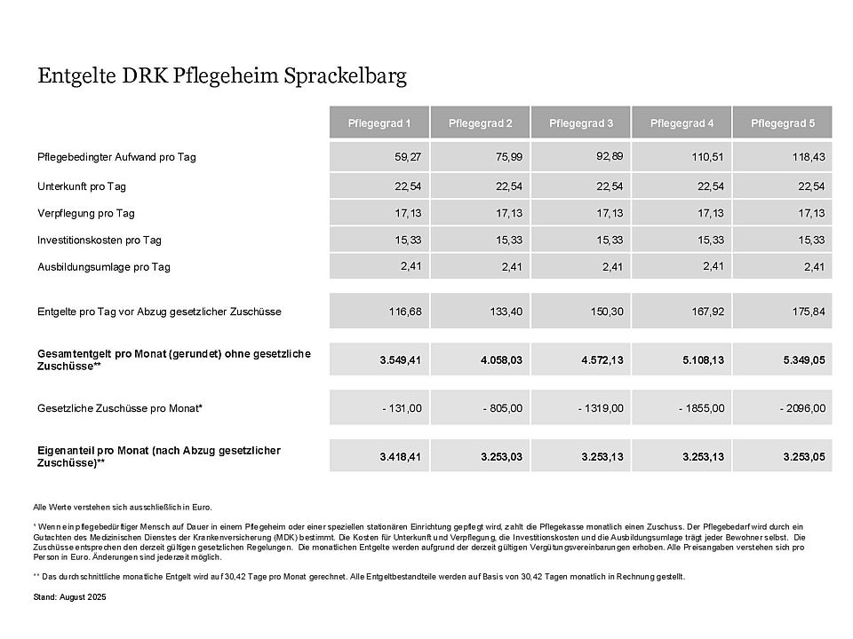 Ab dem 01.01.2022 wird der von gesetzlich pflegeversicherten Bewohnerinnen/Bewohnern zu tragende Eigenanteil an den pflegebedingten Aufwendungen bei vollstationärer Pflege begrenzt, indem die gesetzliche Pflegekasse einen Teilbetrag übernimmt und an die Pflegeeinrichtung bezahlt, die deswegen den Rechnungsbetrag für die Bewohnerin/den Bewohner kürzt. Bei privat pflegeversicherten Pflegebedürftigen, die das Entgelt für die pflegebedingten Aufwendungen in voller Höhe selbst zahlen, erhöht sich ihr Erstattungsanspruch gegenüber der privaten Pflegeversicherung entsprechend.